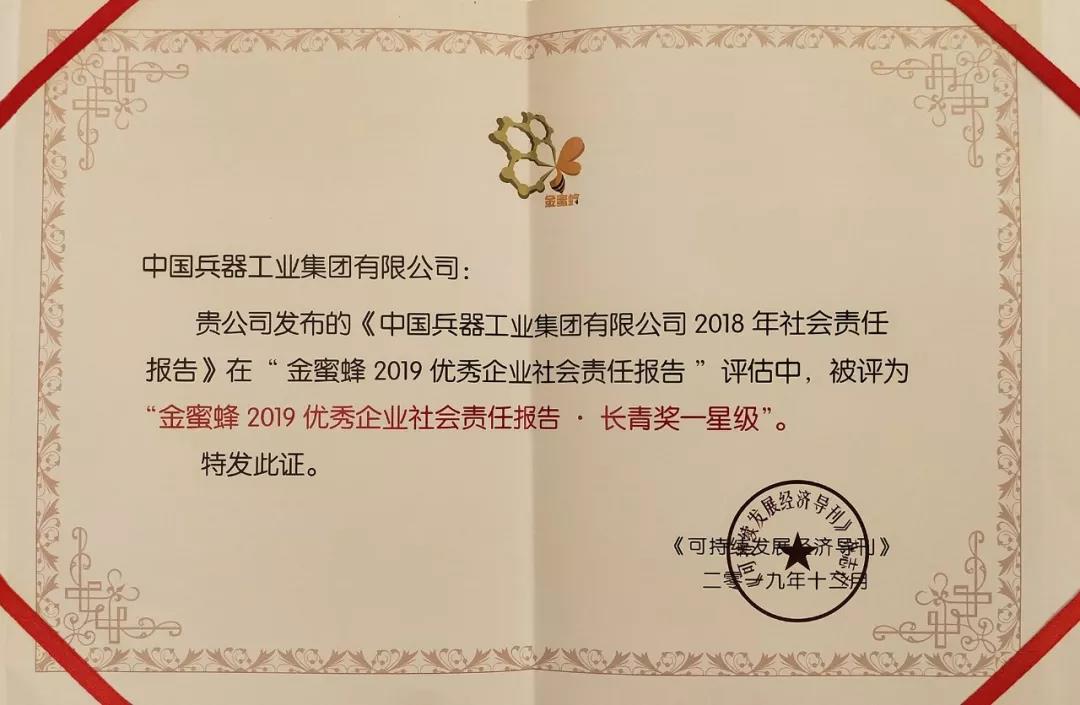 12月5日,在第十二屆中國企業(yè)社會責(zé)任報告國際研討會發(fā)布的“金蜜蜂2019優(yōu)秀企業(yè)社會責(zé)任報告榜”上,《中國兵器工業(yè)集團有限公司2018年社會責(zé)任報告》從近1600份報告中脫穎而出,連續(xù)第二年榮獲“金蜜蜂優(yōu)秀企業(yè)社會責(zé)任報告·長青獎”。同時,也是連續(xù)第6年獲得優(yōu)秀企業(yè)社會責(zé)任報告獎項。