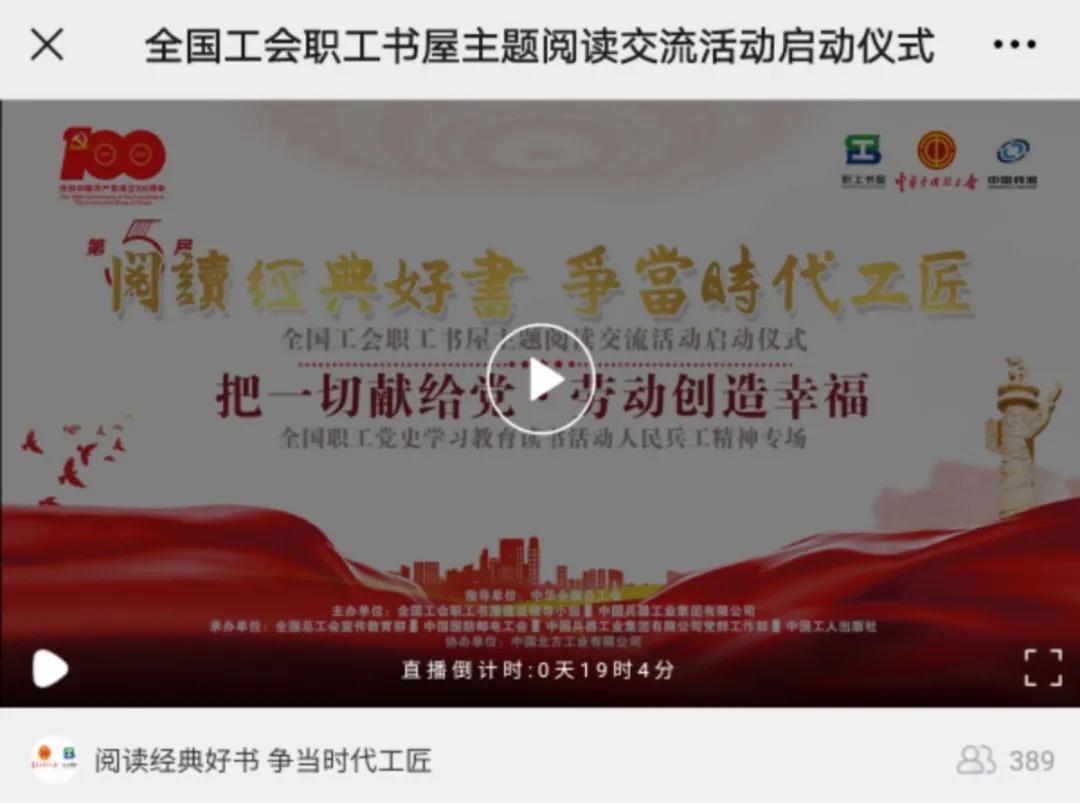又到一年世界讀書(shū)日,激蕩在全國(guó)職工朋友心中的“閱讀經(jīng)典好書(shū) 爭(zhēng)當(dāng)時(shí)代工匠”又一次在神州大地叫響。今年,“把一切獻(xiàn)給黨 勞動(dòng)創(chuàng)造幸?!?/strong>成為了閃亮的主題,在億萬(wàn)職工中掀起心潮。 今天(4月23日)下午 15:00,第五屆“閱讀經(jīng)典好書(shū) 爭(zhēng)當(dāng)時(shí)代工匠”全國(guó)工會(huì)職工書(shū)屋主題閱讀交流活動(dòng)啟動(dòng)儀式暨“把一切獻(xiàn)給黨·勞動(dòng)創(chuàng)造幸?!?/strong>全國(guó)職工黨史學(xué)習(xí)教育讀書(shū)活動(dòng)人民兵工精神專(zhuān)場(chǎng)隆重開(kāi)啟! 多項(xiàng)閱讀計(jì)劃同場(chǎng)發(fā)布、多本經(jīng)典好書(shū)現(xiàn)場(chǎng)推薦、多位職工誦讀演繹紅色經(jīng)典、勞模代表進(jìn)行閱讀分享和倡議,讓我們共同在閱讀中感悟紅色經(jīng)典,在活動(dòng)中傳承精神力量。 這一年一度的全國(guó)職工閱讀盛典,你還在等什么! 看!在建黨百年的歷史節(jié)點(diǎn),職工現(xiàn)場(chǎng)誦讀紅色經(jīng)典《把一切獻(xiàn)給黨》,傳承以吳運(yùn)鐸為代表的人民兵工精神,感悟經(jīng)典的魅力和信仰的力量。 聽(tīng)!來(lái)自兵器工業(yè)集團(tuán)的全國(guó)勞模代表在現(xiàn)場(chǎng),向廣大職工朋友發(fā)出閱讀倡議。分享在黨的領(lǐng)導(dǎo)下,大國(guó)重器由跟仿跟研到世界領(lǐng)先的蛻變。 來(lái)!聚焦現(xiàn)場(chǎng),正式啟動(dòng)第五屆“閱讀經(jīng)典好書(shū) 爭(zhēng)當(dāng)時(shí)代工匠”全國(guó)工會(huì)職工書(shū)屋主題閱讀交流活動(dòng),同時(shí)點(diǎn)亮專(zhuān)屬人民兵工精神的火炬,讓閱讀熱情傾力綻放。 40余家省級(jí)工會(huì)新媒體 100余家市級(jí)工會(huì)新媒體 200余家知名企業(yè)工會(huì)新媒體 同步直播 精彩即將上演 直播在哪看? STEP1 關(guān)注全總職工書(shū)屋微信號(hào) 點(diǎn)擊下方菜單欄-活動(dòng)專(zhuān)區(qū) 觀看直播啦 還可以同步觀看圖片直播 記錄下每個(gè)精彩時(shí)刻 |