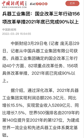 兵器工業(yè)集團(tuán)國企改革三年行動工作成效引發(fā)廣泛關(guān)注丨國企改革看兵器 |