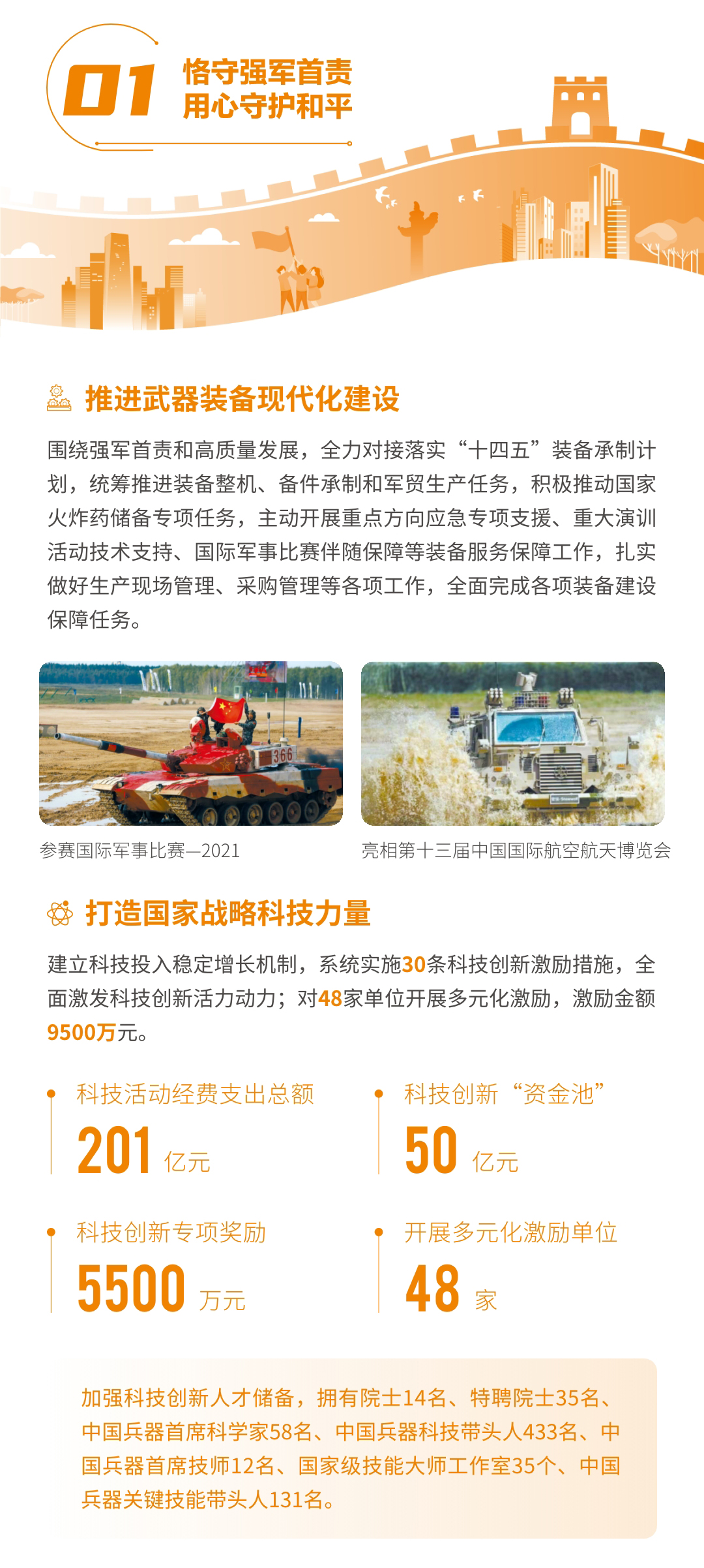 近日,兵器工業(yè)集團正式發(fā)布第十三份年度社會責(zé)任報告——《中國兵器工業(yè)集團有限公司2021年社會責(zé)任報告》,以“用心守護(hù)和平、用力爭創(chuàng)一流、用情溫暖社會”為主題,從恪守強軍首責(zé)、服務(wù)經(jīng)濟建設(shè)、共創(chuàng)美好生活三個維度,向社會全面披露2021年度履責(zé)實踐和履責(zé)業(yè)績?!秷蟾妗愤B續(xù)第三年獲得中國企業(yè)社會責(zé)任報告評級專家委員會“五星佳”評級,兵器工業(yè)集團成為軍工行業(yè)唯一連續(xù)11年獲得五星及五星佳最高評級的企業(yè)。 一圖解碼兵器工業(yè)的“責(zé)任力量” |